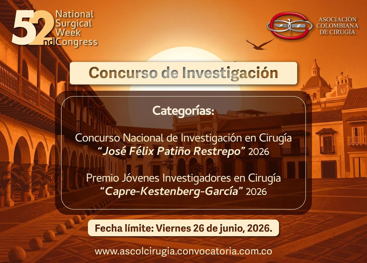 Para ser considerado por el Comité de Selección, el manuscrito debe cumplir estrictamente los siguientes requisitos (antes del cierre de la convocatoria), siguiendo las pautas de publicación de la Revista Colombiana de Cirugía, que puede consultar en las instrucciones a los autores de la revista